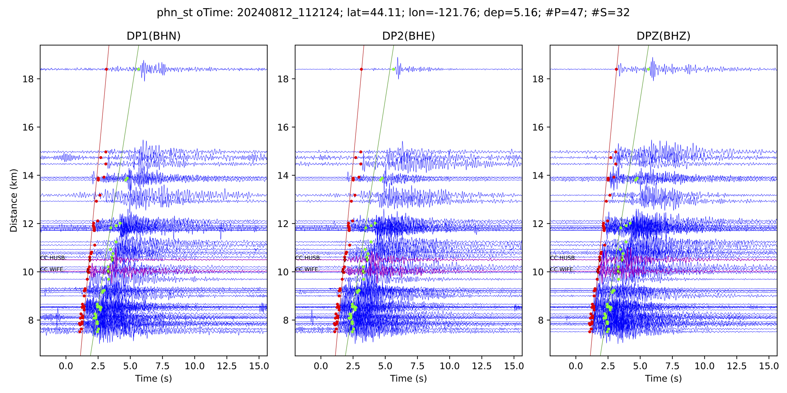 The Three Sisters Volcanic Complex, located in the Central Orogen, is considered one of the most threatening volcanoes in the US (wiki). Continuous ground uplift and magmatic volatile emissions west of South Sister suggest the possibility of ongoing magma intrusion into the upper crust (USGS report). Existing public seismicity catalogs show the area as nearly “silent” aside from a swarm in 2001 near Middle Sister, but long-term monitoring has been challenged by the presence of only two seismometers within the vast (287,000 acres) wilderness area. In this project, we used the data from a newly deployed dense array (5G) to better understand the seismogenic structure underlying the Three Sisters volcanoes. We applied a Machine Learning (PhaseNet, PyOcto) and Match Filtering (MF) workflow to detect and locate small seismic events that may have been overlooked by the existing seismic network.